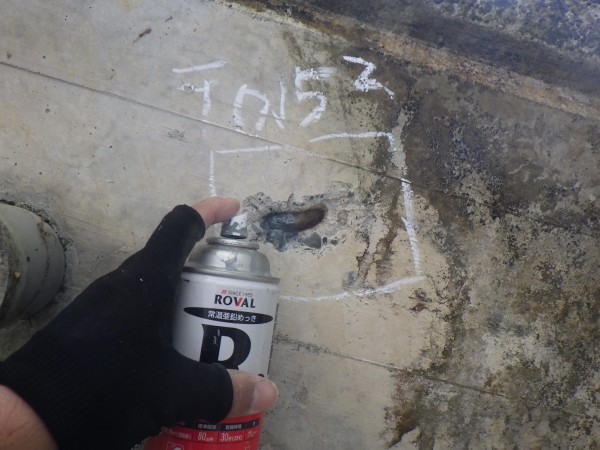 コンクリート中の鉄筋径、被り深さや鉄筋腐食状態確認のため、一部コンクリートをはつり出して、直接計測する場合があります。